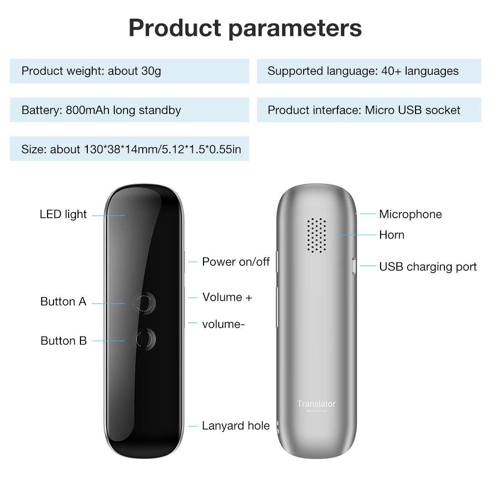 Translator Voice Speech Bluetooth Wireless Translator Two-Way Real Time 40 Multi-Language Translati